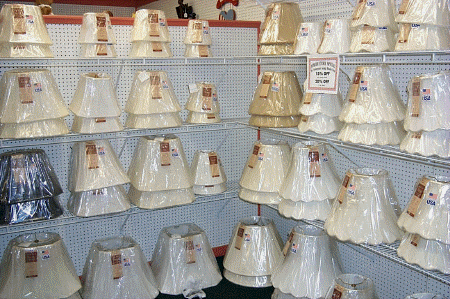 Lamp rewiring and repair, chandelier work, and a wide selection of silk and glass shades.